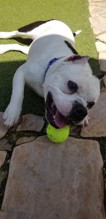 He's about 30 pounds right now but still has some growing to do, he should grow about another 10 pounds. He is so sweet and loves cuddling but also has a lot of energy and is always on the go! He is incredibly smart, he learned to open doors by jumping up on them. He loves to learn and show off. While he is still learning his manners, he loves playing with toys but he hasn't quite learned that sharing is caring. He is crate trained so he can’t eat anything he's not supposed to while he is unsupervised. (He likes picking up rocks!)